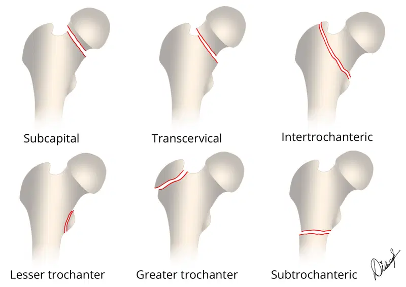 Proximal Femoral fractures classification subtypes quiz image
