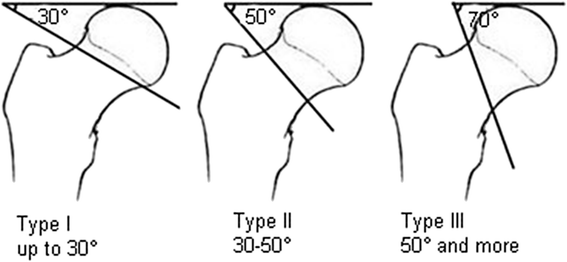 Femoral neck fractures are classified according to the Garden System in elderly patients (>70-75 years) and Pauwels system in young adults (<65-70 years)